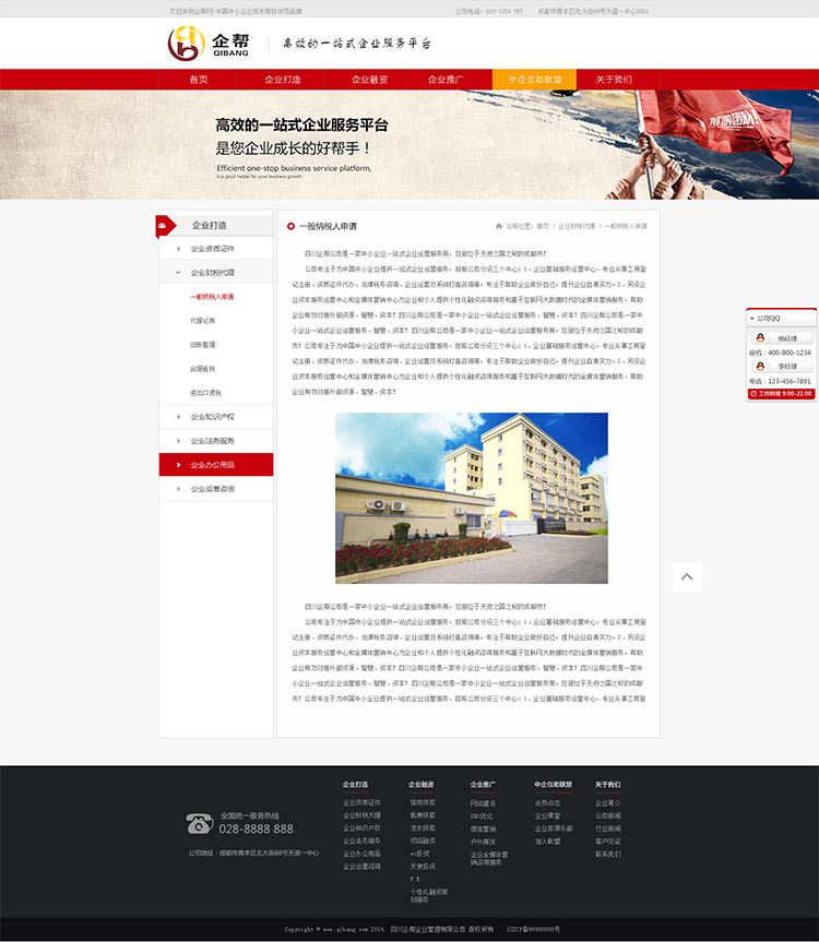 四川企幫企業管理有限公司正式成立于2014年,公司專注于為中國中小企業提供一站式企業運營服務,目前公司分設三個中心: