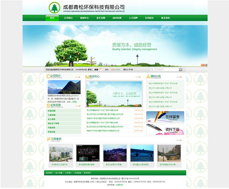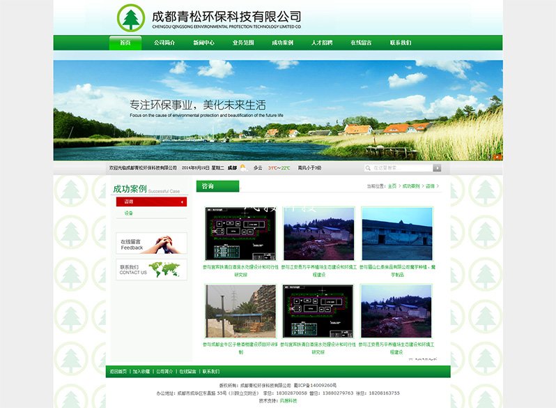 成都青松環保科技有限公司成立于2012年,是一家集環保咨詢、工程咨詢、節能評估、清潔生產審核和環保設備儀器銷售為一體的綜合性技術服務公司,公司現有規模11人,總工程師有污水治理工程經驗20余年,公司領導均為環境工程專業畢業,環保工程咨詢人員工作經驗均在三年以上,公司具體業務范圍主要涵蓋環保技術及新能源技術研發,技術咨詢(環評,可行性研究報告編制),技術推廣。工程管理服務,節能技術推廣服務(節能評估報告編制),水土保持方案編制。環保工程設計施工(施工方案,施工圖設計,設備安裝調試),環保設備,儀器銷售。