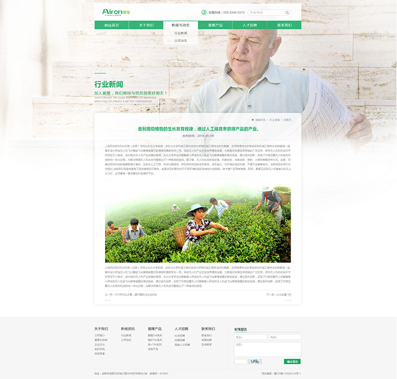 網站我的理解不僅要好看也得好用簡單,做的好的網站會是不會使用網站的人一眼就看懂主題,愛隆板式我采用的是減法來做的。本網站有四個大板塊我采用一個板塊一個介紹不用太多一行放三個大板塊。主要展示產品累的單獨排放板式。首先我們從頭部導航說起:“導航采用懸浮式八十來排放導航偏向簡單化主要已導航一級導航和收索為主。簡單的功能大氣的畫面更方便用戶使用一看就懂。” banner圖是網站宣傳的招牌本網站客戶需要定制3個banner圖 要出現除公司的強大綠色環保,首先我采用的是主要以綠色農業圖片為主凸顯出農業環保主題,第二板塊是產品介紹:產品介紹我采用的是是哪類似排版愛隆有是哪個主要產品,吧最主要的三個產品分為三類展示,第三個板塊是吧 關于愛隆、新聞動態、人才招聘放到一排同一站式一行 主要內容島內也展示 首頁主要是展示為主。煮也不好看用戶也不回流線來看你的內容頁面。