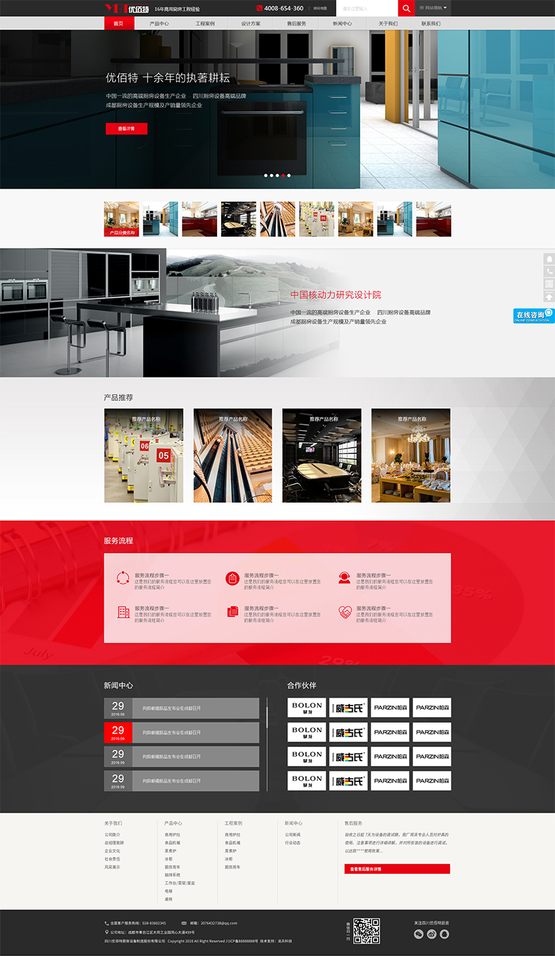 這次與我們合作的客戶(hù)公司名稱(chēng)是四川優(yōu)佰特廚房設(shè)備制造股份有限公司,屬于大客戶(hù),不管是網(wǎng)站費(fèi)用還是客戶(hù)公司規(guī)模,都挺大的,必須認(rèn)真對(duì)待,客戶(hù)也屬于了解互聯(lián)網(wǎng)的客戶(hù),能夠提供完整的設(shè)計(jì)思路,頁(yè)面規(guī)劃圖,基本上屬于我們的工作客戶(hù)替我們做了一大半,就只差潤(rùn)色了。不過(guò)客戶(hù)前后提供的設(shè)計(jì)思路圖不一樣,可能沒(méi)有100%的確定最終思路圖,于是設(shè)計(jì)的時(shí)候需要用到一些技巧,比如,先設(shè)計(jì)那些不會(huì)變化的東西,再設(shè)計(jì)核心部分。
