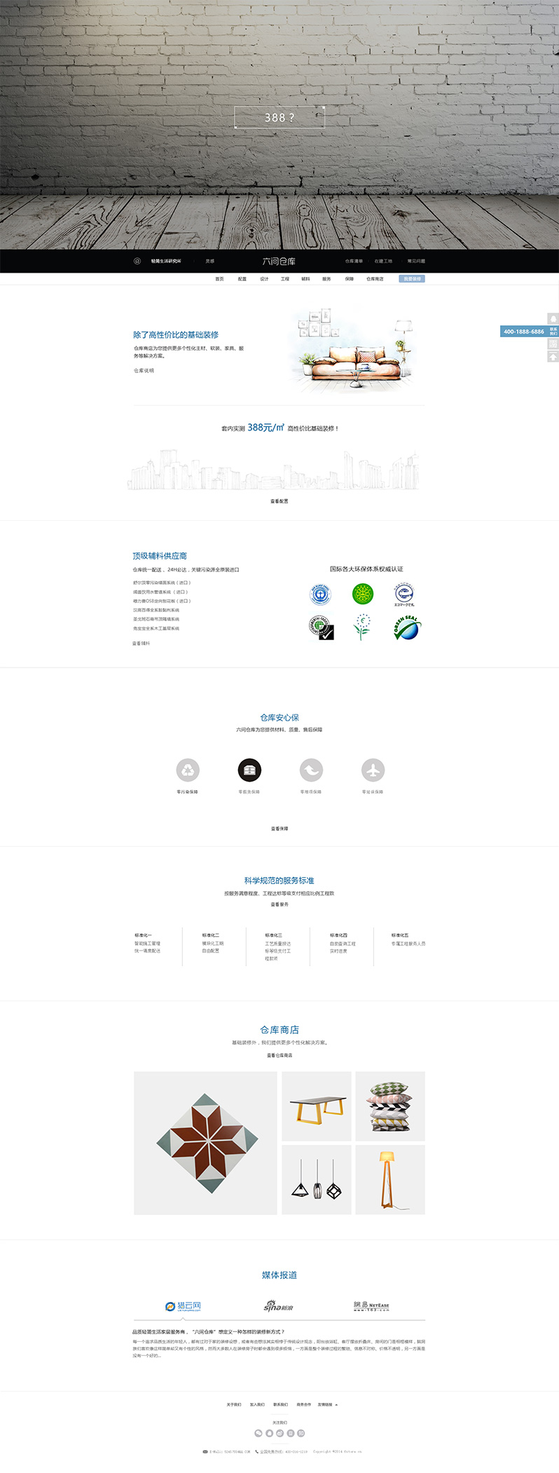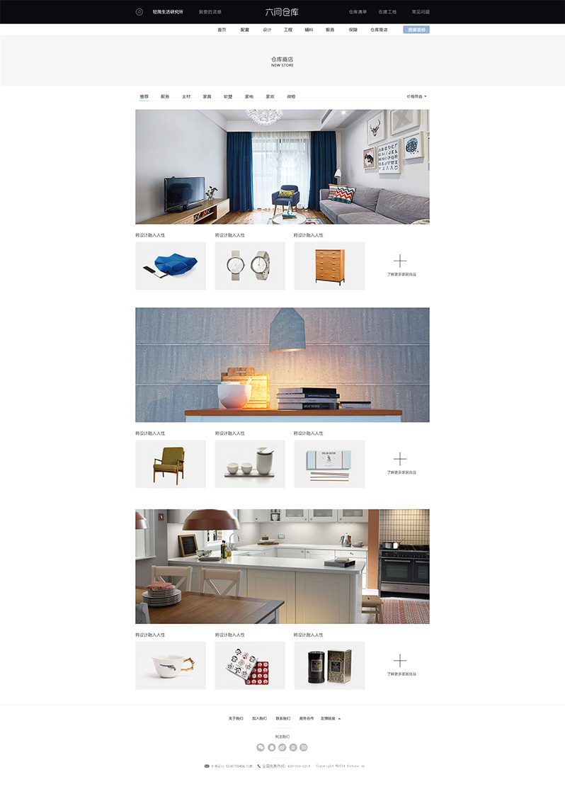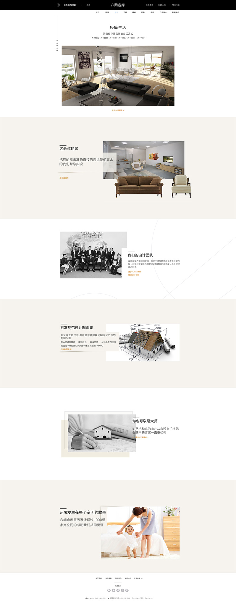 六間倉庫是一家裝修+材料公司 負責室內設計 材料一次性購買全室內需要的物品,屬于電子商城網站 ,本網站個現在市場上常見的電子商城本事要求較高:客戶需求、高端大氣 + 低調+簡單