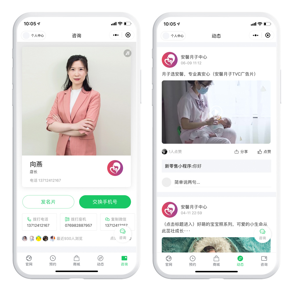 |?項目名稱:安馨月子中心小程序開發 所屬類型:微信小程序 項目設計周期:20天 安馨月子中心是一家專業的高端月子會所中心,主要有月子套餐、產康服務、月子餐飲、科學育兒。 通